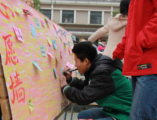 12月15日,南昌大學(xué)護(hù)理學(xué)院在醫(yī)學(xué)院新世紀(jì)廣場舉行了2013大學(xué)生社會實踐評選成果校園巡展。此次巡展共展出17塊展板,其中包括6塊獲獎優(yōu)秀團(tuán)隊介紹板、6塊“愛佑童心”志愿者隊“愛佑之行”展板、3塊“愛·一起來”宣傳海報板、一塊留言板和一塊心愿墻展板。展板形象展現(xiàn)了“愛佑童心”三下鄉(xiāng)團(tuán)隊實踐全過程,從前期的緊張準(zhǔn)備、中期實踐到后期的精心總結(jié),將“愛佑童心”六支實踐隊伍的活動詳細(xì)地展現(xiàn)給大家。最后,參觀者也在心愿墻為先心患兒寫下最真摯的祝福,“愛佑童心,加油”“祝愿先心患兒早日康復(fù)”“藍(lán)天白云之下,我們與愛佑同行”等等祝福心愿擠滿心愿墻。