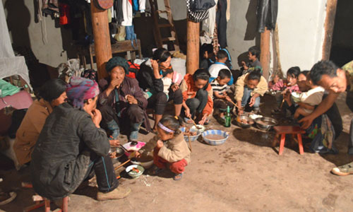 對于偏遠(yuǎn)山區(qū)的貧困與落后,雖然隊(duì)員們早有心理準(zhǔn)備,但實(shí)際到了兩河口鎮(zhèn),當(dāng)?shù)仄D苦的條件還是遠(yuǎn)遠(yuǎn)超出了這群在大城市里生活慣了的年輕人的想象。沒有網(wǎng)絡(luò),白天斷電,有時(shí)為了發(fā)送一條短信打一個電話需要走很遠(yuǎn)的路才會有信號。飲食也是一大挑戰(zhàn),實(shí)踐隊(duì)的伙食是清一色的土豆,而且一天只有兩頓土豆,這是當(dāng)?shù)氐牧?xí)俗。沒有桌子,所有人就在地上吃,沒有筷子就用手。煮的土豆吃膩了就吃烤土豆,扒皮后蘸點(diǎn)調(diào)料,吃得滿嘴滿手黑乎乎的。對于這樣的飲食方式,隊(duì)員們一開始的確不適應(yīng),覺得有點(diǎn)落后和不衛(wèi)生,但面對彝家人的熱情好客,隊(duì)員們也就入鄉(xiāng)隨俗,和彝家人一起享用起大山里的土豆來。為了感謝隊(duì)員們的付出,彝家人偶爾也會給隊(duì)員們做蕎麥餅換換口味。