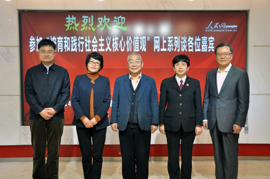 16日上午,北京市房山區(qū)委常委、宣傳部部長(zhǎng)趙佳琛,中國(guó)人民大學(xué)新聞學(xué)院黨委副書(shū)記羅建暉,國(guó)家電網(wǎng)公司思想政治工作部副主任方國(guó)元,北京市海淀區(qū)人民法院副院長(zhǎng)宋魚(yú)水,中國(guó)倫理學(xué)會(huì)名譽(yù)會(huì)長(zhǎng)、中國(guó)社科院研究員陳瑛作為第一場(chǎng)訪談的嘉賓,在人民網(wǎng)強(qiáng)國(guó)論壇與網(wǎng)友進(jìn)行在線交流。