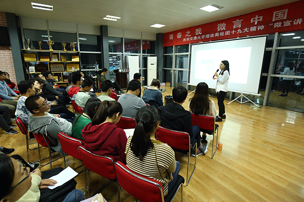 錄制前的電話初采時(shí),聽聞李婧竟是比記者僅大一歲的博士生,我訝異不止。清脆活潑的聲音,大方清晰的談吐,正是一場(chǎng)場(chǎng)宣講留在她身上的印記,也帶著遠(yuǎn)遠(yuǎn)超出她這個(gè)年紀(jì)的穩(wěn)重和堅(jiān)定。從2017年作為第一批宣講人加入西安交通大學(xué)學(xué)生微宣講團(tuán)開始,從山村小學(xué)到重點(diǎn)高校,從工廠車間到領(lǐng)軍企業(yè),從邊防軍營(yíng)到繁華都市,李婧的足跡遍布22個(gè)省(市、自治區(qū)),參與宣講工作。