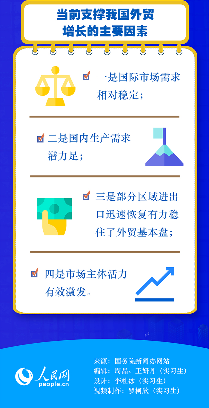 商務(wù)部原副部長(zhǎng)魏建國(guó)在接受人民網(wǎng)“強(qiáng)觀察”欄目記者采訪時(shí)表示,上半年的外貿(mào)增長(zhǎng)主要有三方面原因:首先,高效統(tǒng)籌疫情防控和經(jīng)濟(jì)社會(huì)發(fā)展取得實(shí)效。其次,多措并舉穩(wěn)市場(chǎng)主體。隨著國(guó)家穩(wěn)經(jīng)濟(jì)一攬子政策措施的落地見(jiàn)效,外貿(mào)保穩(wěn)提質(zhì)等各項(xiàng)工作加快推進(jìn),我國(guó)外貿(mào)市場(chǎng)主體活力有效激發(fā)。此外,以國(guó)內(nèi)大循環(huán)為主體、國(guó)內(nèi)國(guó)際雙循環(huán)相互促進(jìn)的新發(fā)展格局的作用正在發(fā)揮出來(lái)。